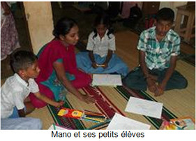 Les cours de l’après-midi continuent en petits groupes mais sont plus ludiques : certains visionnent des DVD éducatifs en anglais ou en tamoul, d’autres font du dessin, du coloriage, du découpage ou du chant.